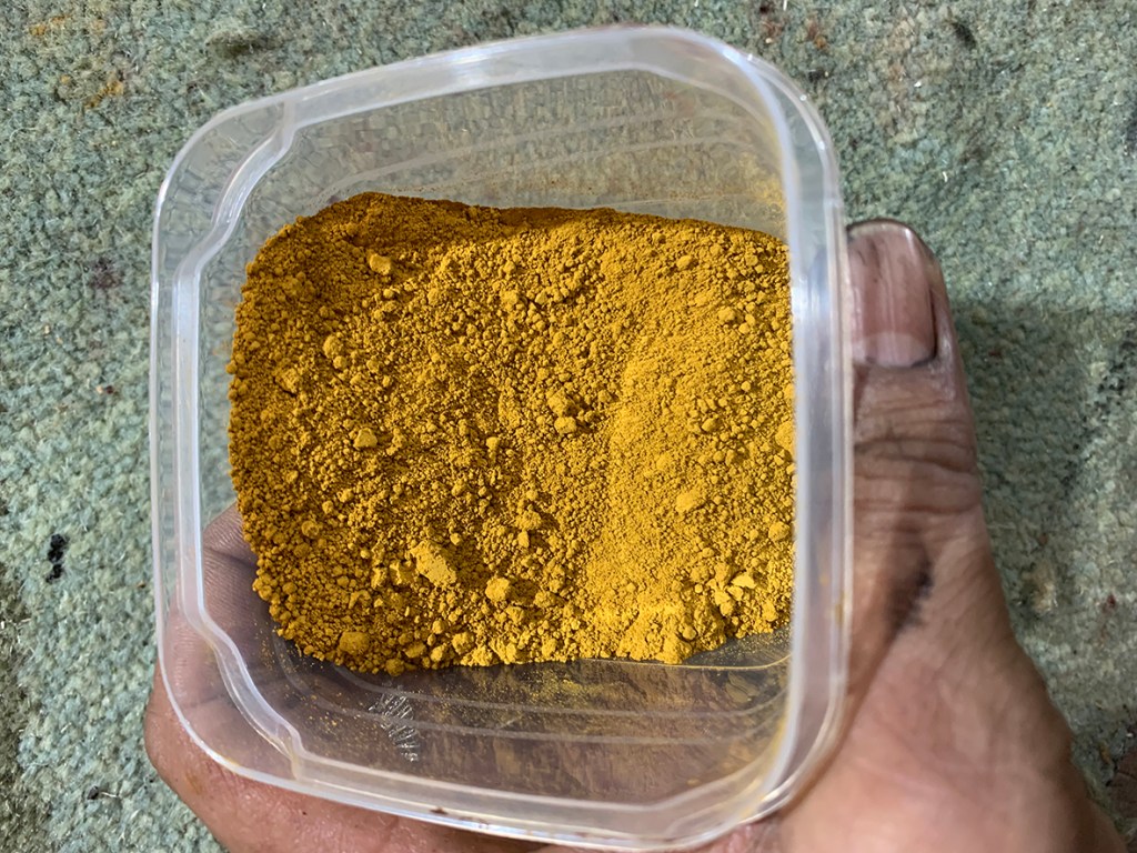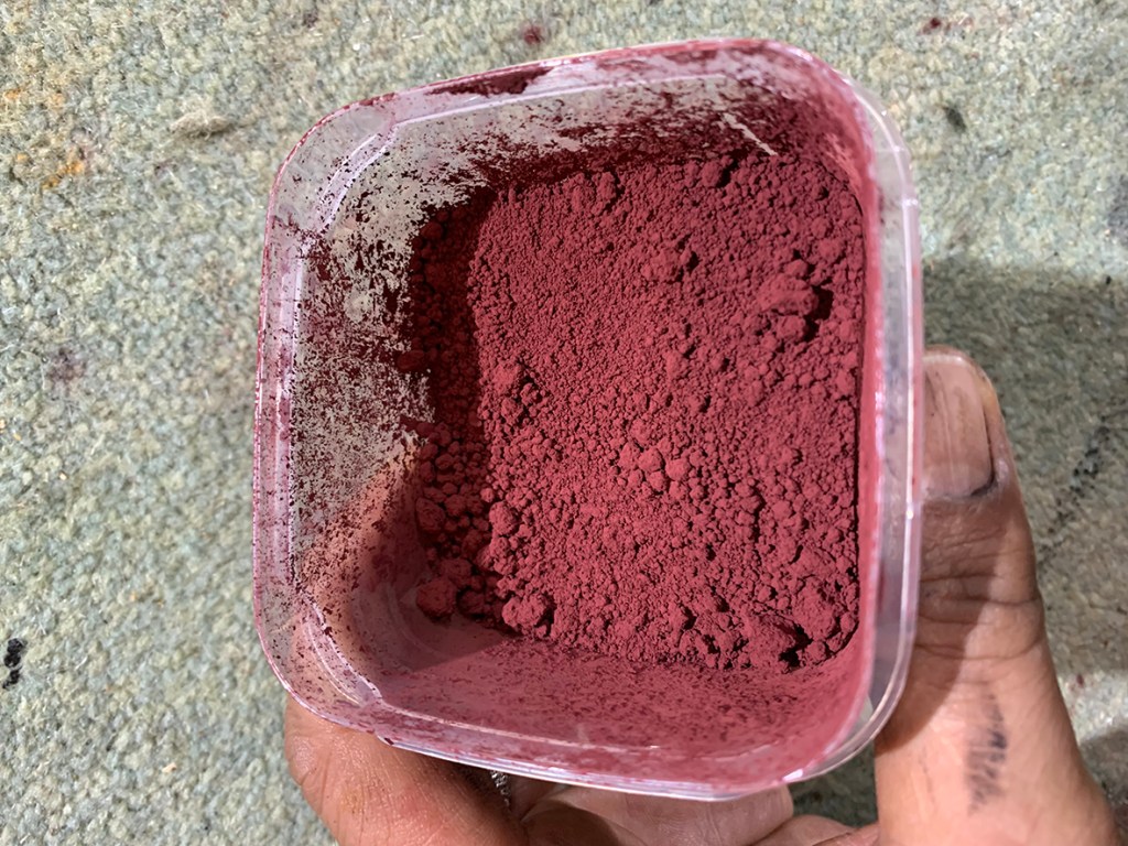 Le mot « bogolan », de la langue bambara (la langue la plus utilisée au Mali), vient des mots » bogo » qui signifie la terre et « lan« , suffixe bambara sans équivalent en français signifiant « issu de ». Pour mes créations, je confectionne mes couleurs avec des pigments de terre. Comme moi, mes pigments proviennent de plusieurs pays. La terre, symbole d’ancrage territorial, a une symbolique identitaire importante que j’aime mettre en abyme. Ces pigments sont appliqués sur des tapisseries anciennes afin de créer une dichotomie temporelle et culturelle.